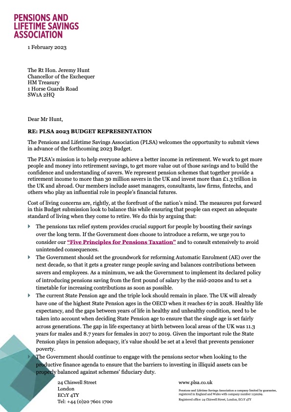 The PLSA welcomes the opportunity to submit views in advance of the forthcoming 2023 Budget. Cost of living concerns are, rightly, at the forefront of the nation’s mind. The measures put forward in this Budget submission look to balance this while ensuring that people can expect an adequate standard of living when they come to retire and covers the following areas: