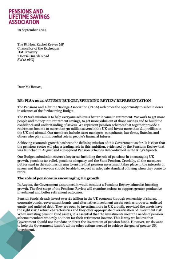 PLSA 2024 Autumn Budget/Spending Review Representation