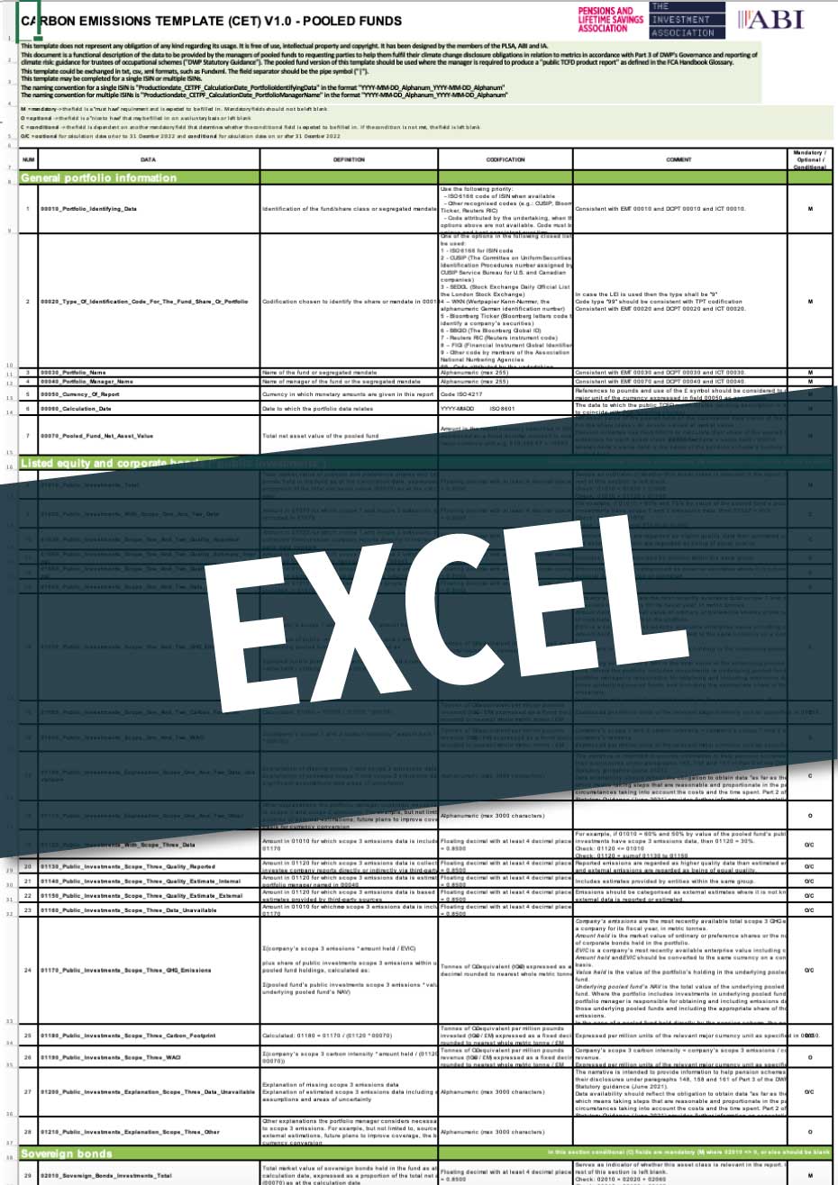 A Joint PLSA/ABI/IA Working Group developed the Carbon Emissions Template (CET) to help pension schemes meet their obligations under the Climate Change Governance and Reporting Regulations, and associated DWP Statutory Guidance, and to help insurers and investment managers fulfil their obligations under the FCA’s new ESG Sourcebook as set out in PS21/24.