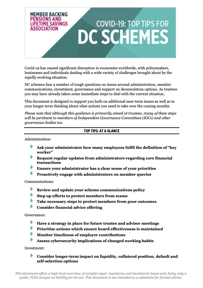 Covid 19: Top tips for DC schemes