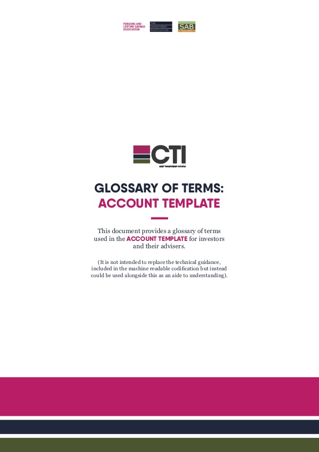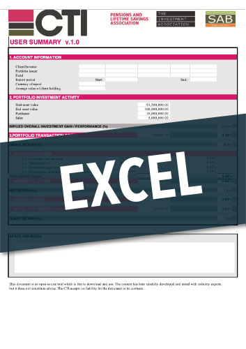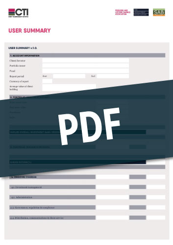 A. The machine-readable format of the main Account Template is available to make it easier for firms to provide data in a way which is compatible with their systems and to allow computers to easily extract and process the information. Your asset manager should be able to provide this data to your adviser or information provider in a way which can be easily translated into a readily understandable (e.g. visual) format. Alternatively, you or your asset manager may be able to map this information directly into a format similar to the User Summary (available on the CTI website).