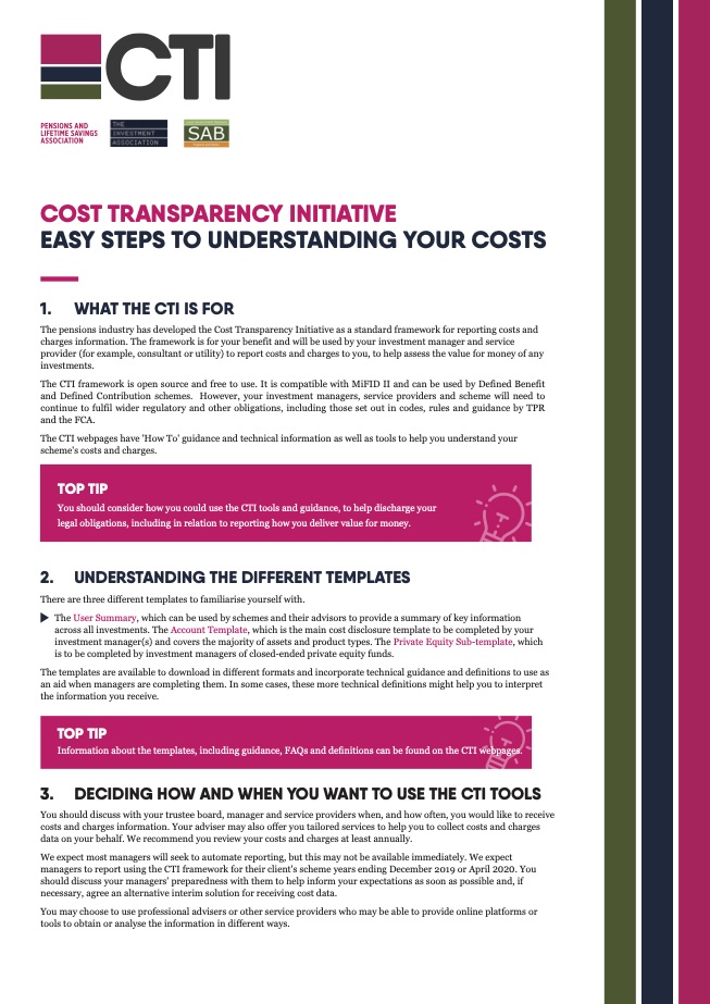 Many asset managers who manage public funds are already signatories to the LGPS Transparency Code and have therefore transferred to the CTI templates by 2020.