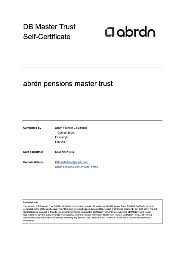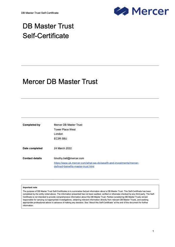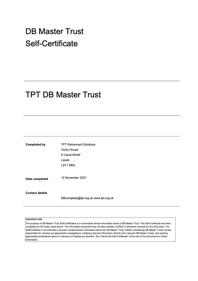 While the self-certificate provides useful information about the DB Master Trust, it is important to note that they are not an assessment of the quality of the scheme, nor are they the only consolidation option available.