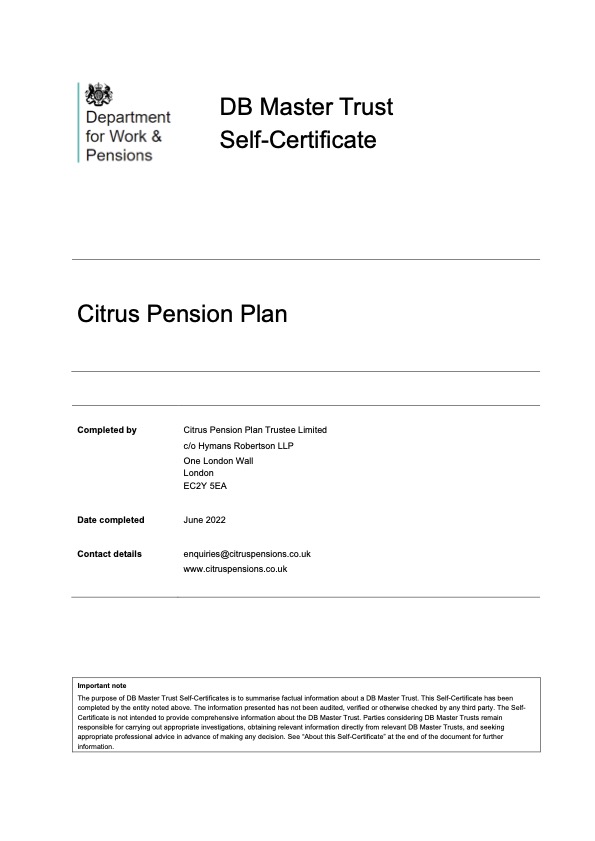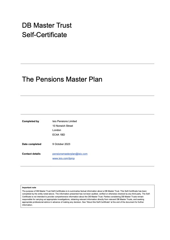 Pensions UK is pleased to host DB Master Trust Self-Certificates.