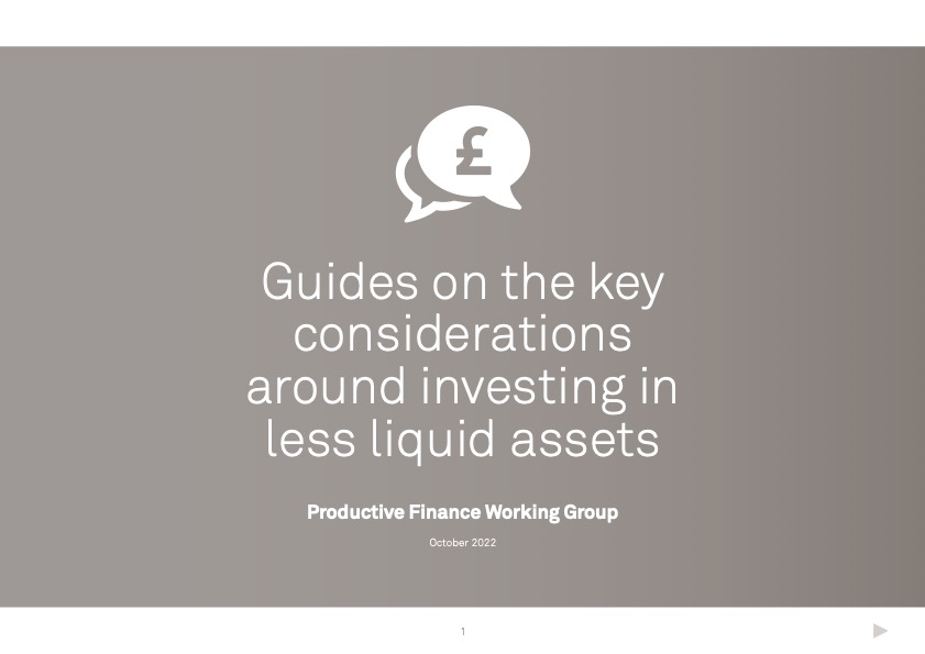 The Productive Finance Working Group, of which the PLSA is a member, has produced a new set of guides aimed at offering trustees advice on some of the key issues to be thinking about when making allocations to illiquid assets.