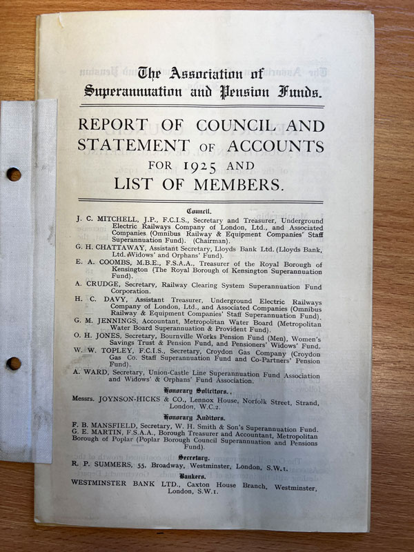 Our mission began on 18 January 1923 when the Association of Superannuation and Pension Funds was founded, born out of work six years earlier by a group of people involved in transport sector pensions, laying the foundations to the Finance Act 1921.