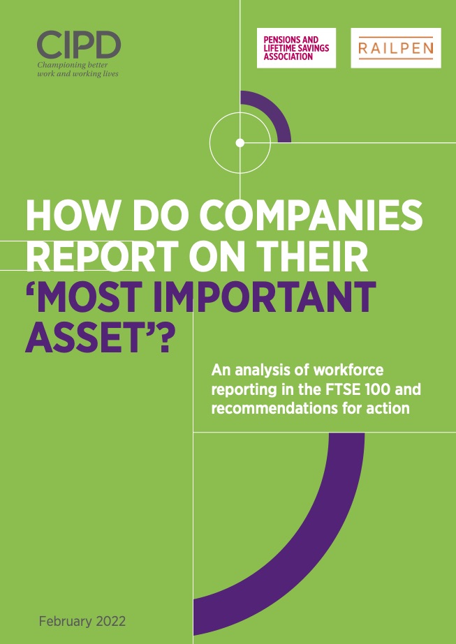 This report, produced in partnership by the CIPD, the PLSA and Railpen, analyses the quality of disclosures in the 2021 annual reports of FTSE 100 companies against seven key themes: Workforce cost and composition; employee relations and wellbeing; reward; voice; skills, capabilities and recruitment; and response to COVID-19.