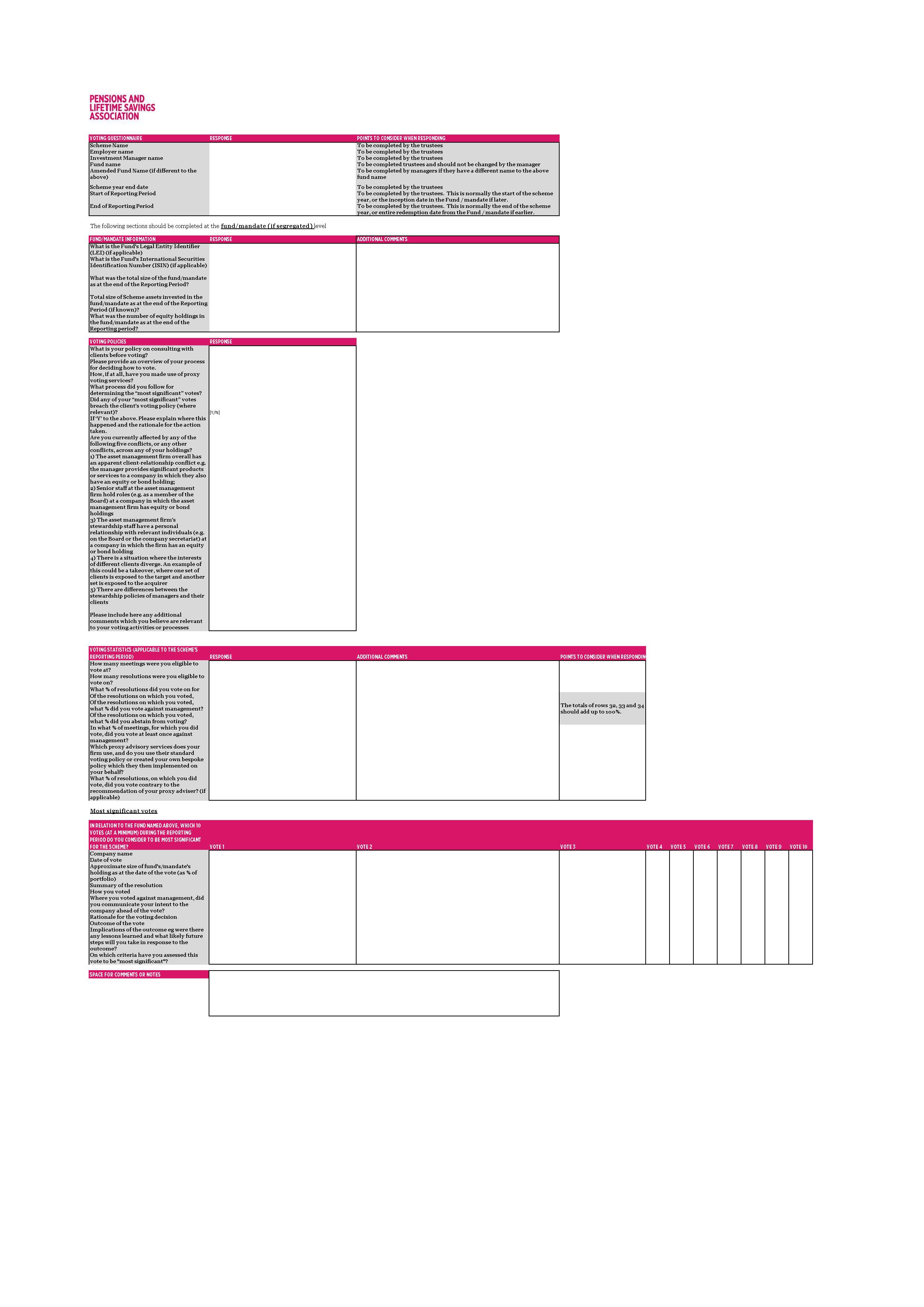 - Where the template ‘fits in’ as part of the trustees’ broader work to scrutinise their managers’ voting behaviour undertaken on their behalf
