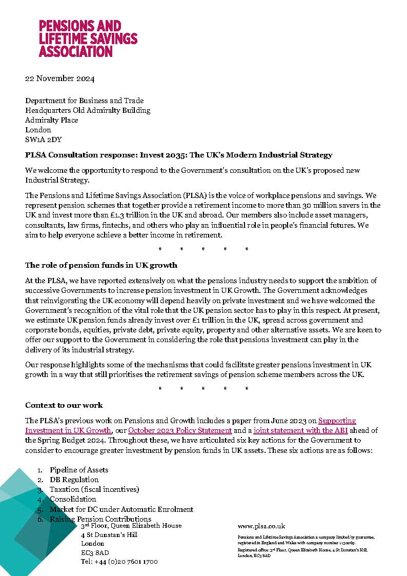 Invest 2035: The UK’s Modern Industrial Strategy – PLSA response