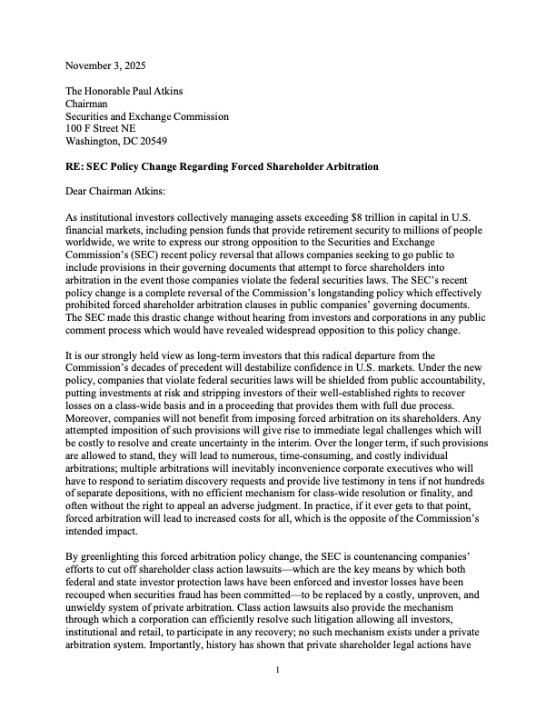 Pensions UK has added its name to a joint letter to the SEC, signed by a cohort of large international investors, representing a total of more than £6 trillion in assets, to express its opposition to the decision.