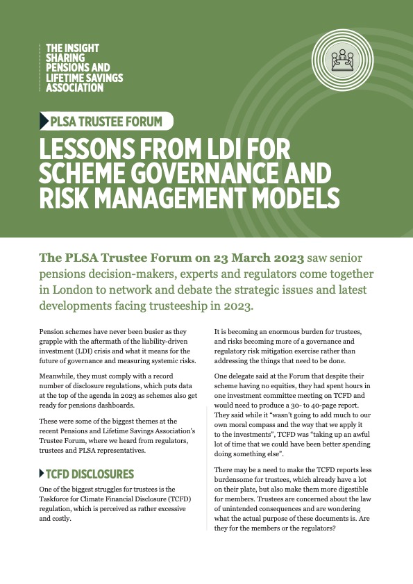 These were some of the biggest themes at the recent Pensions and Lifetime Savings Association’s Trustee Forum, where we heard from regulators, trustees and PLSA representatives.