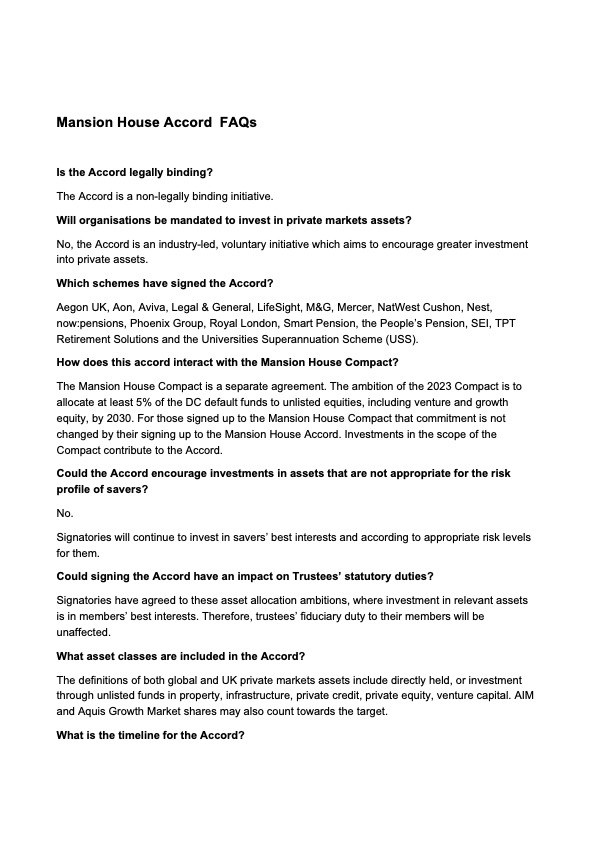 The Mansion House Accord and FAQs