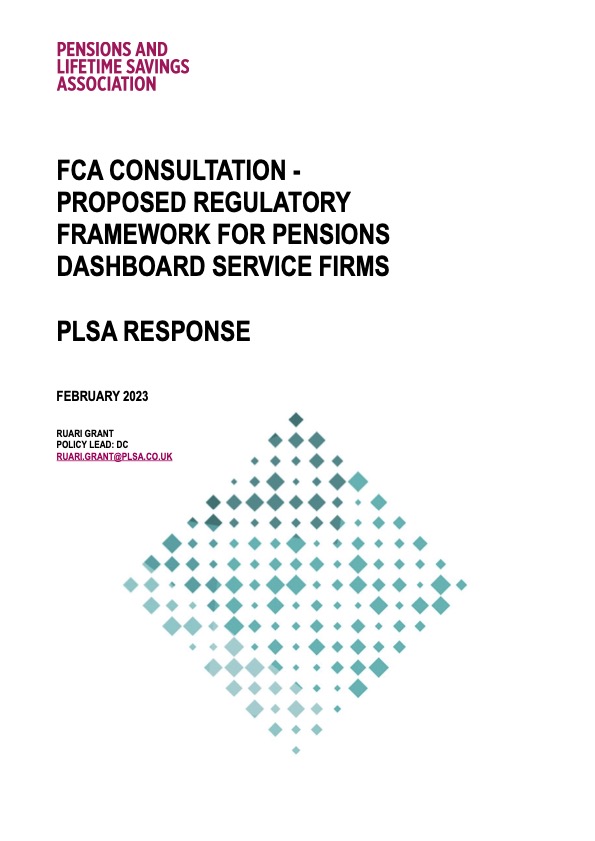 This submission sets out the PLSA’s views on the FCA’s proposed authorisation regime for firms providing pensions dashboards. As well as usual criteria for firms becoming authorised, it includes rules restricting the export of users’ data to third parties, except where they are in the same group as the firm providing the dashboard. It also seeks to set the perimeter within which dashboard activity and post view services and data modellers can be provided.