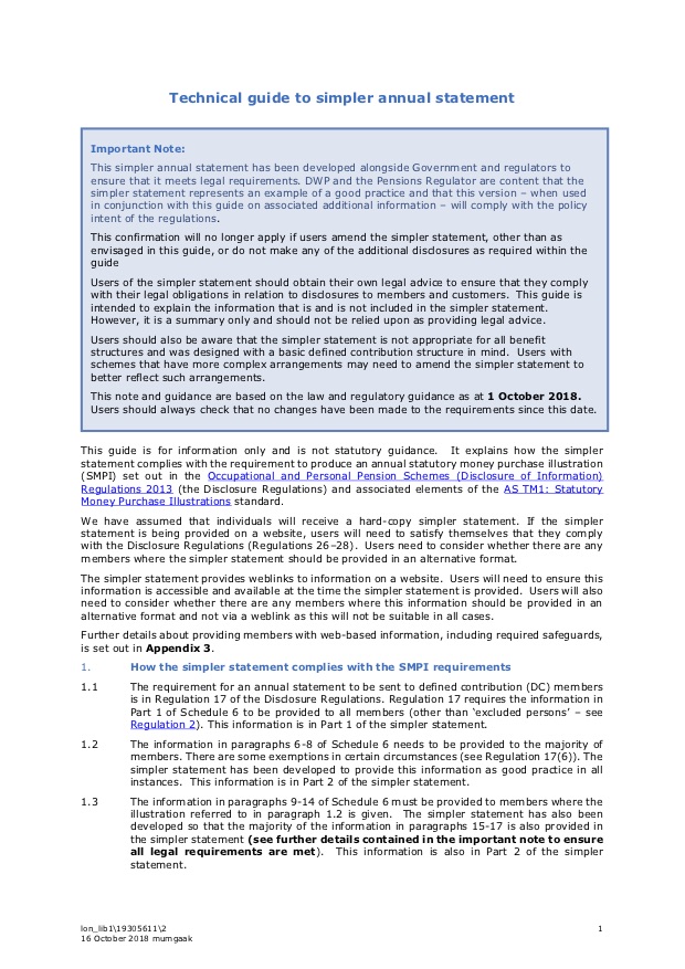 The simpler annual pension statement and technical guide