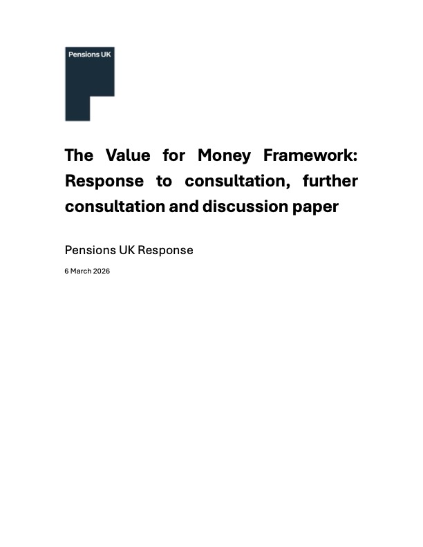 Pensions UK has submitted a response to the joint FCA, TPR, and DWP consultation on the Value for Money Framework. The Framework represents a significant shift in how pension arrangements are assessed, rated, and compared. In our response, we broadly support the direction of the proposals - including the RAGG rating system and forward-looking metrics - while calling for a light-touch first year of assessments, additional dry runs, and careful management of the consequences associated with Amber ratings.