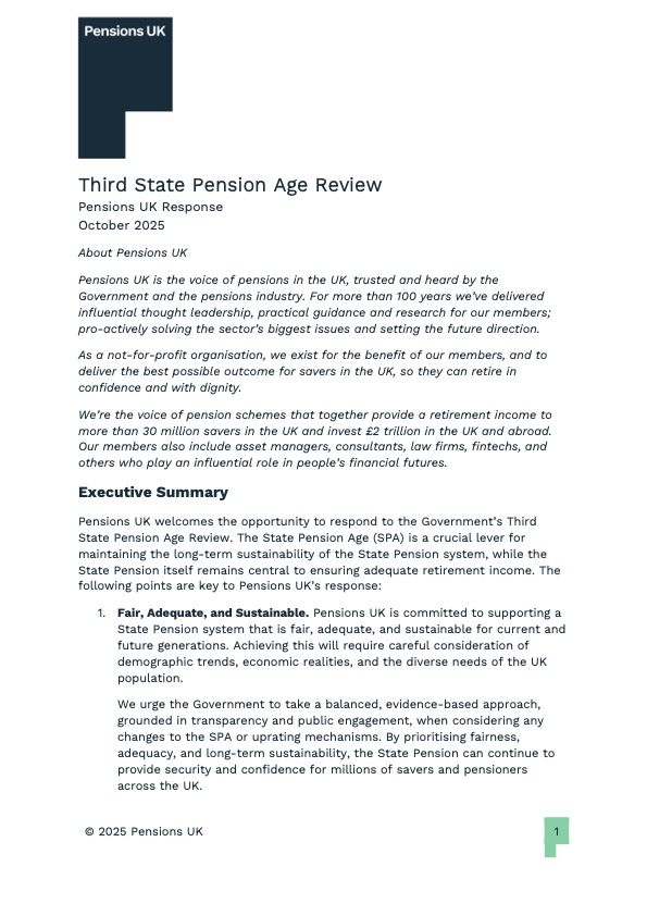 Pensions UK has submitted a response to the Government’s Third State Pension Age review.