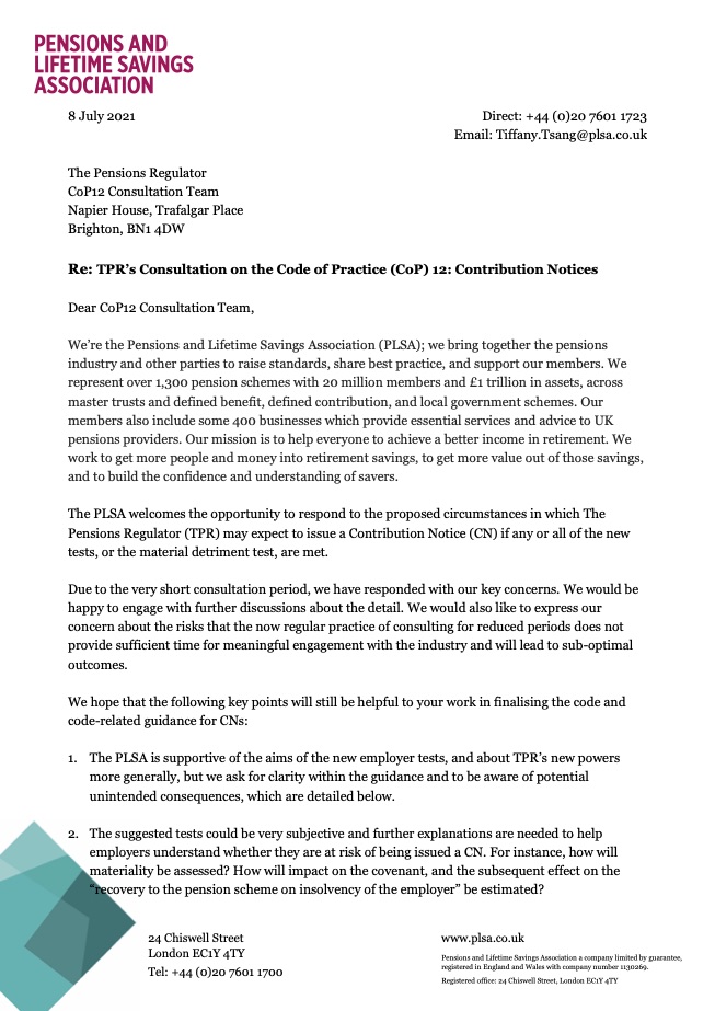 TPR’s Consultation on the Code of Practice (CoP) 12: Contribution Notices