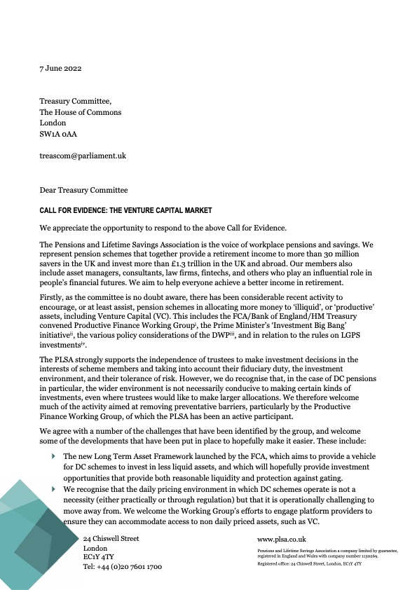 The PLSA has provided an overview of some of the factors impacting pension fund abilities to investment in asset classes such as VC, and set out some of the changes we’d like to see to improve the situation.